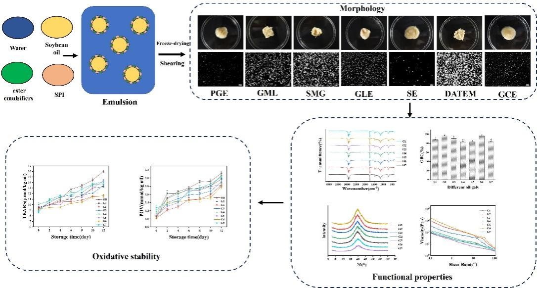 近日,我院2022级食品科学专业硕士研究生陈爔,在导师朱建飞副教授的指导下,在食品领域国际期刊《Food Chemistry》发表了题为“Preparation of soybean protein isolate–ester emulsifier oleogels and comparative study of their structure and properties”的研究论文(https://doi.org/10.1016/j.foodchem.2024.140927 )。