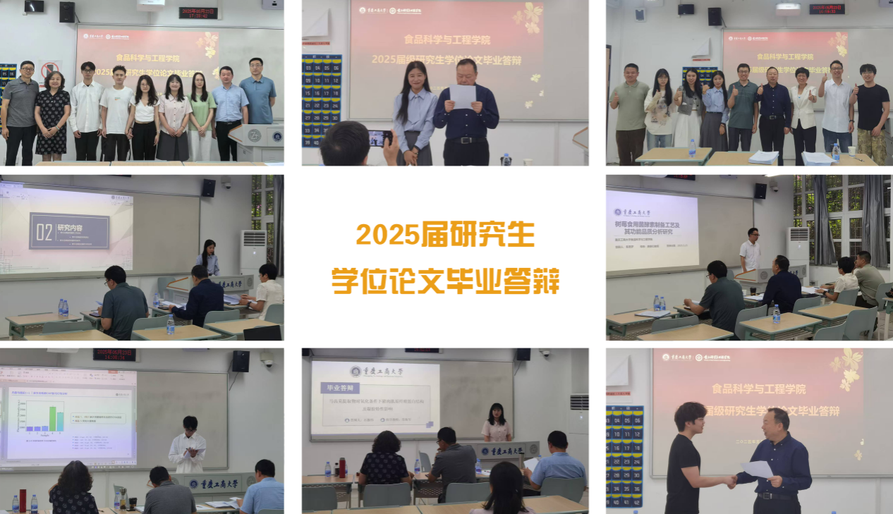 2025年5月23日,学院2025届食品科学与工程专业学术型硕士研究生学位论文毕业答辩会在明智楼110217、110218教室顺利举行。本次答辩特邀西南大学相关学科教授专家参加。